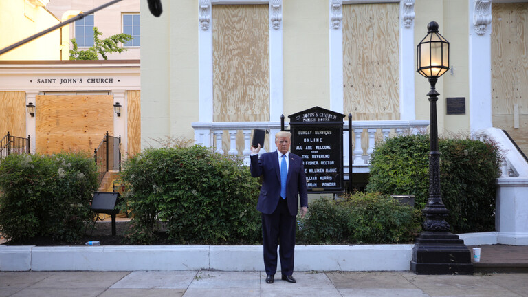 دافع البيت الأبيض بشدة عن ظهور الرئيس الأمريكي دونالد ترامب أمام كنيسة حاملا بيده الكتاب المقدس، على خلفية الاضطرابات الاجتماعية والاحتجاجات واسعة النطاق في الولايات المتحدة.
