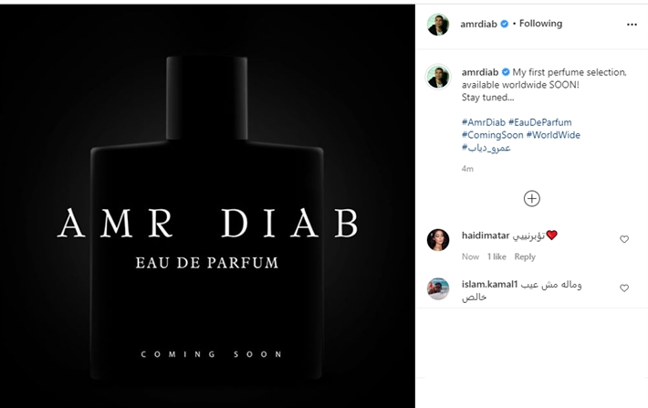 ونشر عمرو دياب صورة الإعلان عبر حساباته على مواقع التواصل الاجتماعي، مشوقًا جمهوره وعلق كاتبًا: “اختياري الأول في العطور، سيكون متاحًا في جميع أنحاء العالم قريبًا، ابقوا منتظرين”.