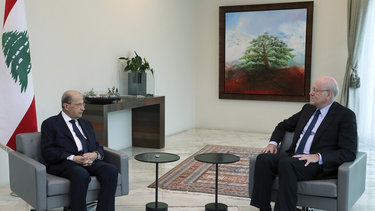 عون يبحث مع ميقاتي التطورات بعد التحرك الإسرائيلي بشأن التنقيب عن الغاز والنفط بمنطقة متنازع عليها