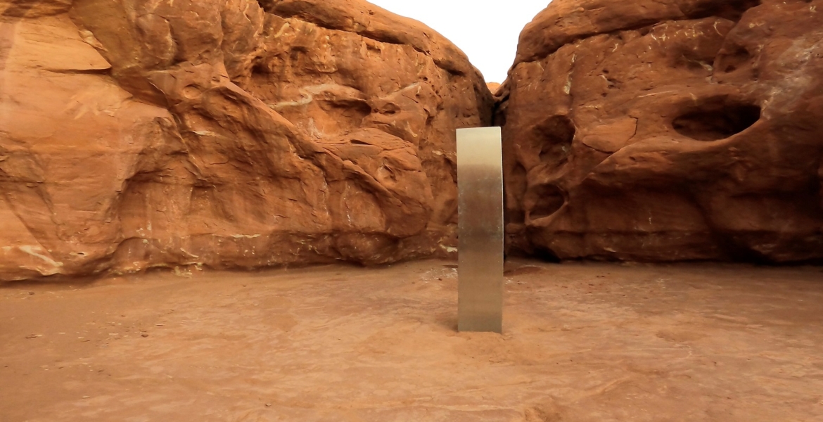 وكانت صور للعمود الذي يلمع وسط الصخور الحمراء المتربة قد انتشرت على الإنترنت ولاحظ الكثيرون تشابهاً مبهماً بما يطلق عليه (المونوليث) في فيلم “2001: أوديسا الفضاء” (2001: إيه سبيس أوديسي) للمخرج ستانلي كوبريك الذي صدر في عام 1968، وهو ما أثار نكاتاً عن احتمال قدومه من خارج الأرض.