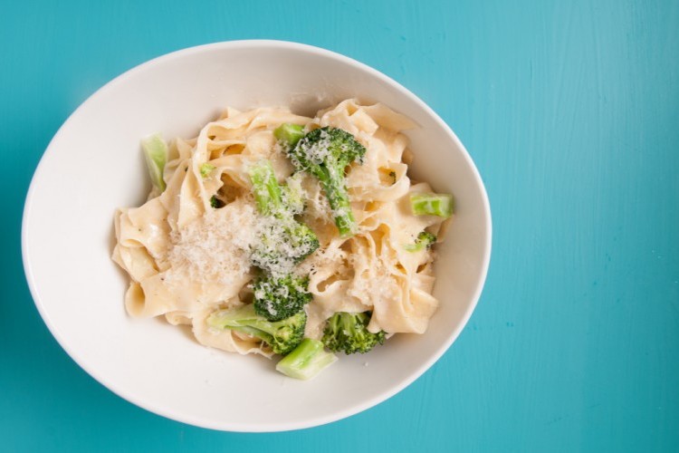 يتم إضافة الحليب والكريمة ونترك المكوّنات حتى تصل إلى درجة الغليان وفي مقلاة أخرى نقوم بسلق البروكلي.