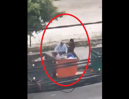 ويظهر من مقطع الفيديو الصادم قيام الزوج والزوجة بالعبث بالقمامة بكل أريحية، والأكل منها بشكل طبيعي وعادي، ويتعازمون على بعضهما من مخلفات الطعام الملقاة في القمامة.