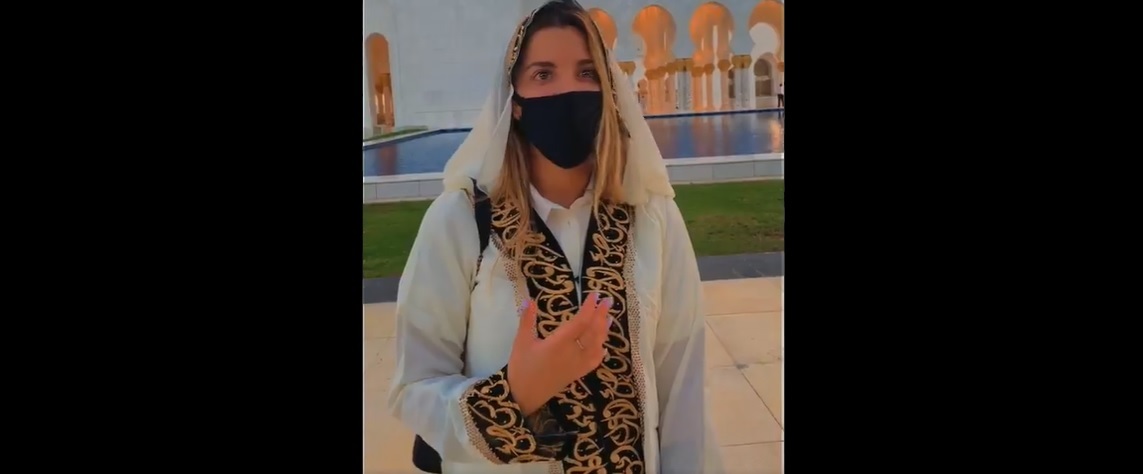 وقالت الفتاة الإسرائيلية التي تدعى (فانيسا) وظهرت بعباءة إماراتية خلال المقطع إنها سعيدة جدا بتواجدها في الإمارات وداخل مسجد الشيخ زايد الكبير.