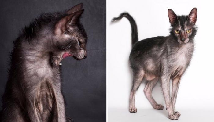 والقط “لوبو”، الذي يبلغ من العمر 6 سنوات، ينتمي لسلالة نادرة جدا تسمى “ليكوي” وهي فصيلة من القطط مكشوفة الجلد بسبب قلة الشعر عليها مما يعطيها مظهرا غريبا يجعلها تبدو كـ”المستذئبين” في الأفلام الخيالية.