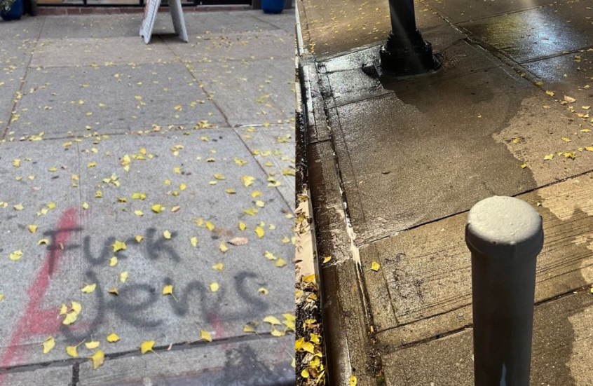 وكتب مجهولون على رصيف في بروكلين عبارة “اللعنة على اليهود”، ليلة الجمعة، وفقا لعضو مجلس مدينة نيويورك، لينكولن ريسلر، وهو يهودي. وكتب ريسلر أن موظفي المدينة أزالوا العبارة صباح السبت.
