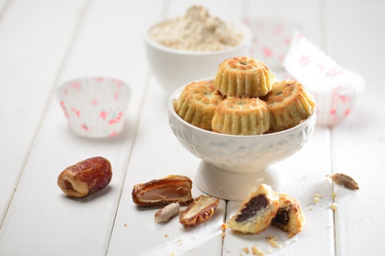 قومي بتقطيع التمر على شكل كرات ثم احشيه داخل العجينة المقطعة إلى كرات أيضاً وشكليه حسب الرغبة.