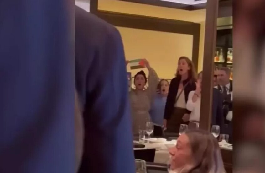 وقد أطلق زبائن آخرون صيحات استهجان تجاه ترامب وأعضاء حكومته، بينما واصل المحتجون الهتاف ورفعوا الأعلام الفلسطينية والكوفية.