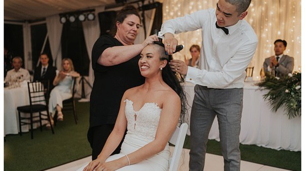 وجلس العريس، البالغ من العمر 20 عامًا، في وسط منصة الرقص وتولت عروسه حلاقة شعره بالكامل، قبل أن يبدأ بدوره في حلق شعرها، وأعلنت العروس قبيل البدء في حلق شعر شريك حياتها أنهما سيتبرعان بأي مبلغ يُقدم إليهما من الحاضرين لدعم مرضى السرطان، ولم يتمكن العديد من الضيوف من تمالك دموعهم في تلك اللحظات.