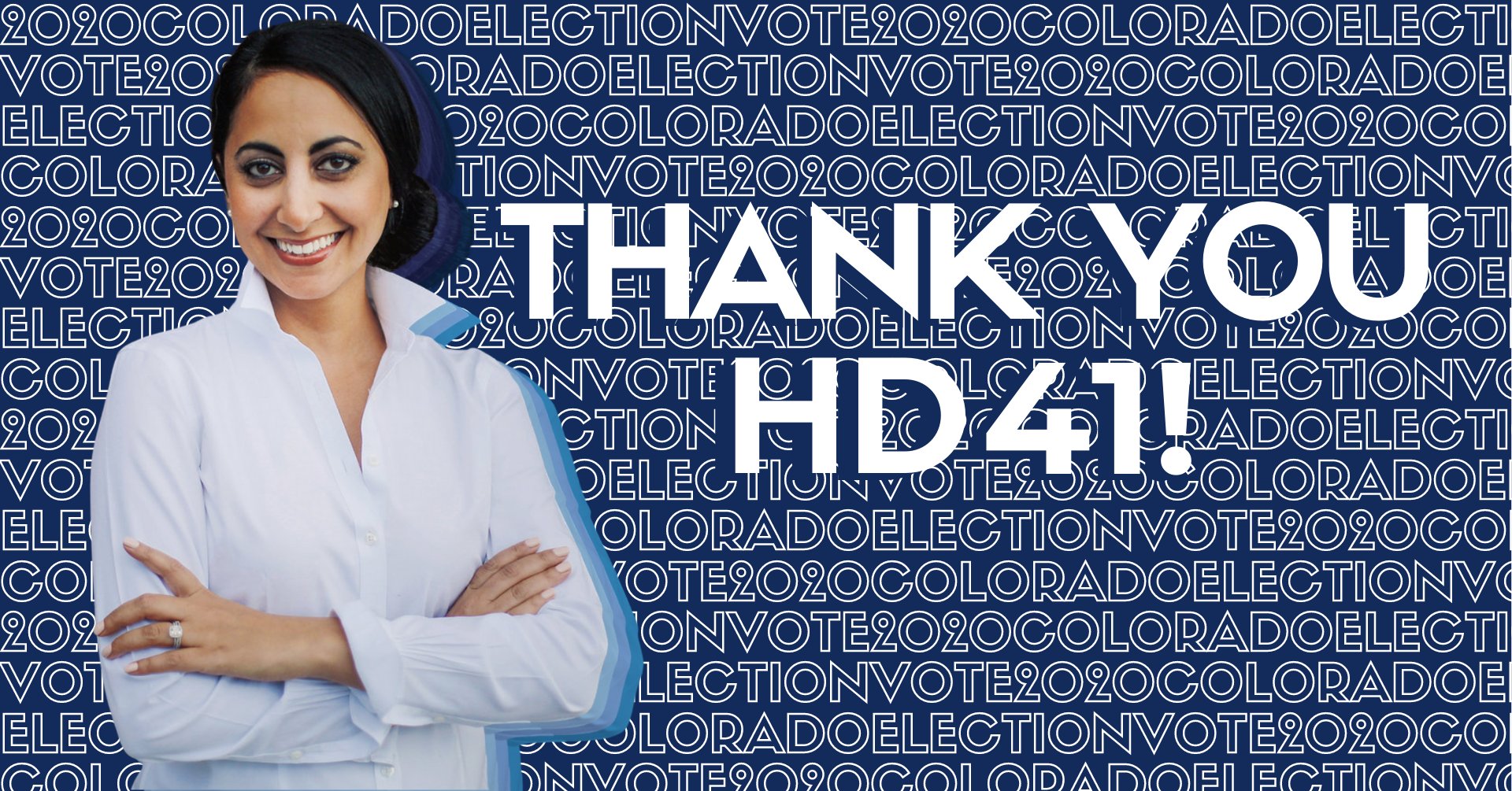 لقد فعلناها عملت بجد لأجعل الحلم الأمريكي حقيقة للجميع. أنا فخورة كمسلمة، فلسطينية أمريكية، وأن أكون قادرة على تمثيل المواطنين في الهيئة التشريعية لولاية كولورادو، الآن، لنبدأ العمل.