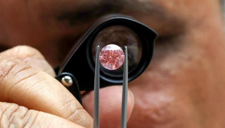 ويقول بينما كان يتفحص بعناية حجر ألماس وردي اللون “حينها اشتريت أحجارا صغيرة من الألماس الخام… كان حجم عملي صغيرا وقليل التكلفة”.