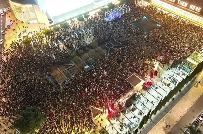 ويطالب المشاركون في الاحتجاج بالقرب من مبنى الكنيست باستقالة الحكومة، وإجراء انتخابات جديدة، والتوصل إلى اتفاق سريع لإطلاق سراح الرهائن الذين تحتجزهم حركة حماس.