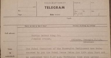 نوبل تنشر برقية منح مارتن لوثر كينج جائزة السلام وتوجه سؤالا للجمهور