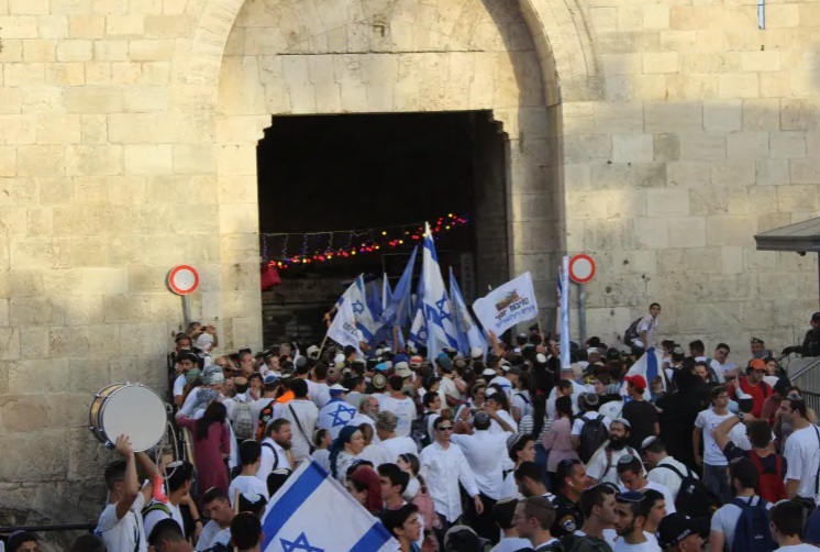 ويشارك في المسيرة آلاف المستوطنين واليمينيين الإسرائيليين، وتبدأ من غربي القدس وتمر من باب العامود، أحد أبواب البلدة القديمة شرقي المدينة.