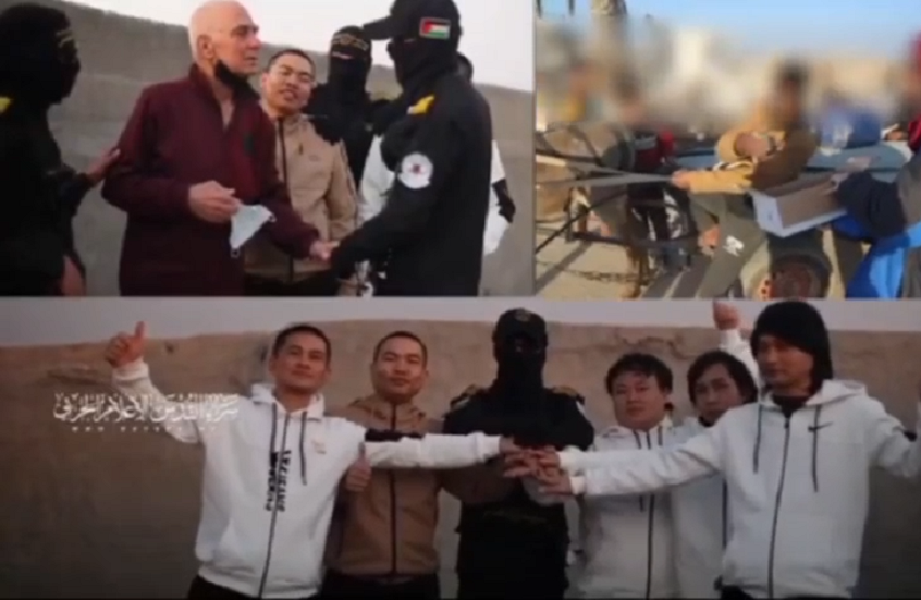 وأظهر مقطع الفيديو الذي نشرته “سرايا القدس” مشاهد تعرض لأول مرة للأسيرين السابقين، أربيل يهود وغادي موزيس وهما يتجولان في شوارع غزة، ووقوف أربيل يهود في اتجاه “كيبوتس نير عوز” و5 تايلانديين آخرين جرى الإفراج عنهم.