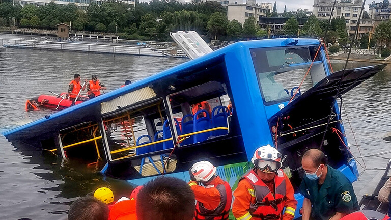 مقتل 21 شخصا على الأقل إثر سقوط حافلة في بحيرة غربي الصين