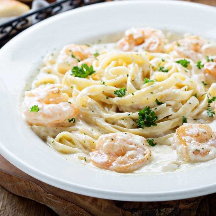 5. أضيفي الجمبري وقلبي لمدة دقيقتين، ثم ارفعي الخليط عن النار.