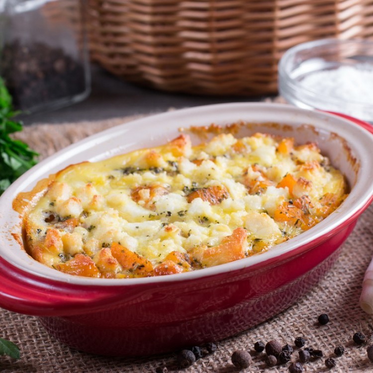- وزّعي القليل من صلصة اليقطين في قعر صينية فرن.