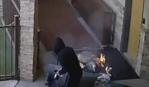وبعد أن بلغ ارتفاع لهيب النيران ثلاثة أو أربعة أقدام، قامت بنقل جزء من الحطام المحترق إلى الملعب الخاص بالمسجد، حيث توجد معدات بلاستيكية وعشب طويل، في محاولة واضحة للتخريب نتيجة “الكراهية”.