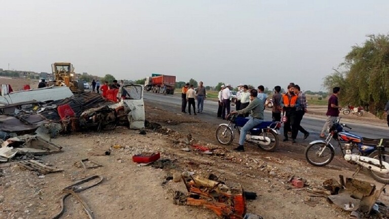 16 قتيلا جراء اصطدام شاحنة بحافلة صغيرة في إيران